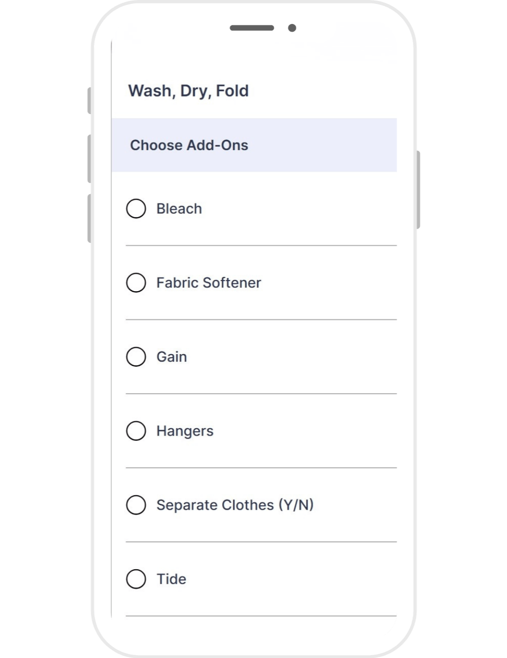 Choose your pickup day, select your detergent, folding preferences, and more.